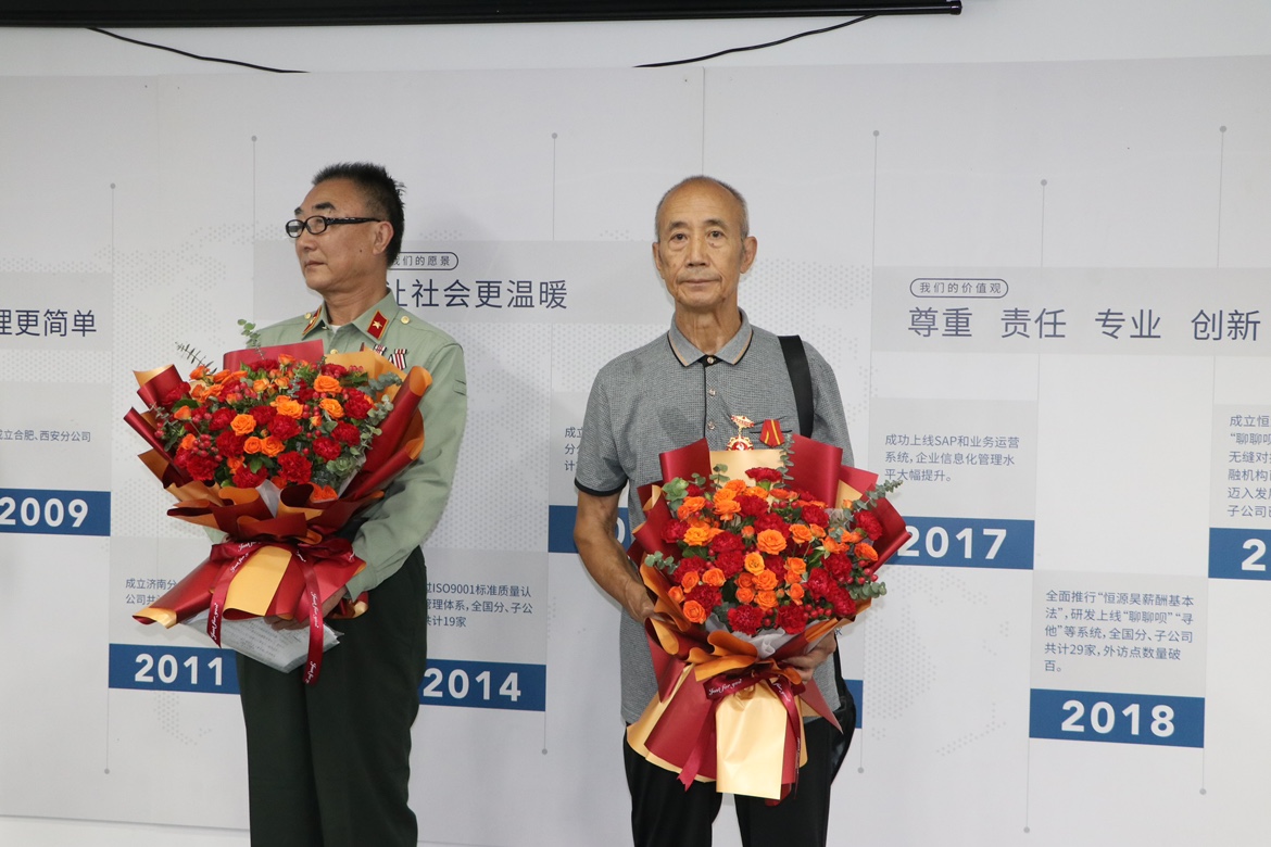 戰(zhàn)爭(zhēng)的硝煙早已散盡,曾親歷浴血奮戰(zhàn)的熱血兒女也步入杖圍之年。當(dāng)兩位老兵戴著莊嚴(yán)的徽章、著軍裝步入職場(chǎng),行軍禮向大家致以問(wèn)候時(shí),大家對(duì)兩位退役軍人的崇敬之情油然而生,職場(chǎng)頓時(shí)響起熱烈的掌聲。