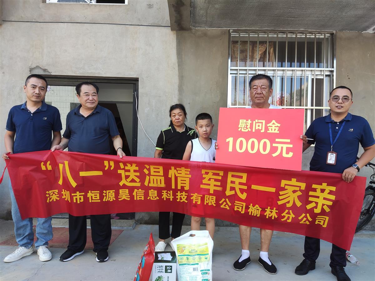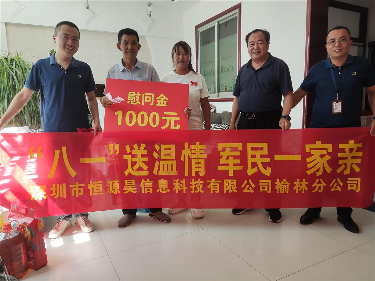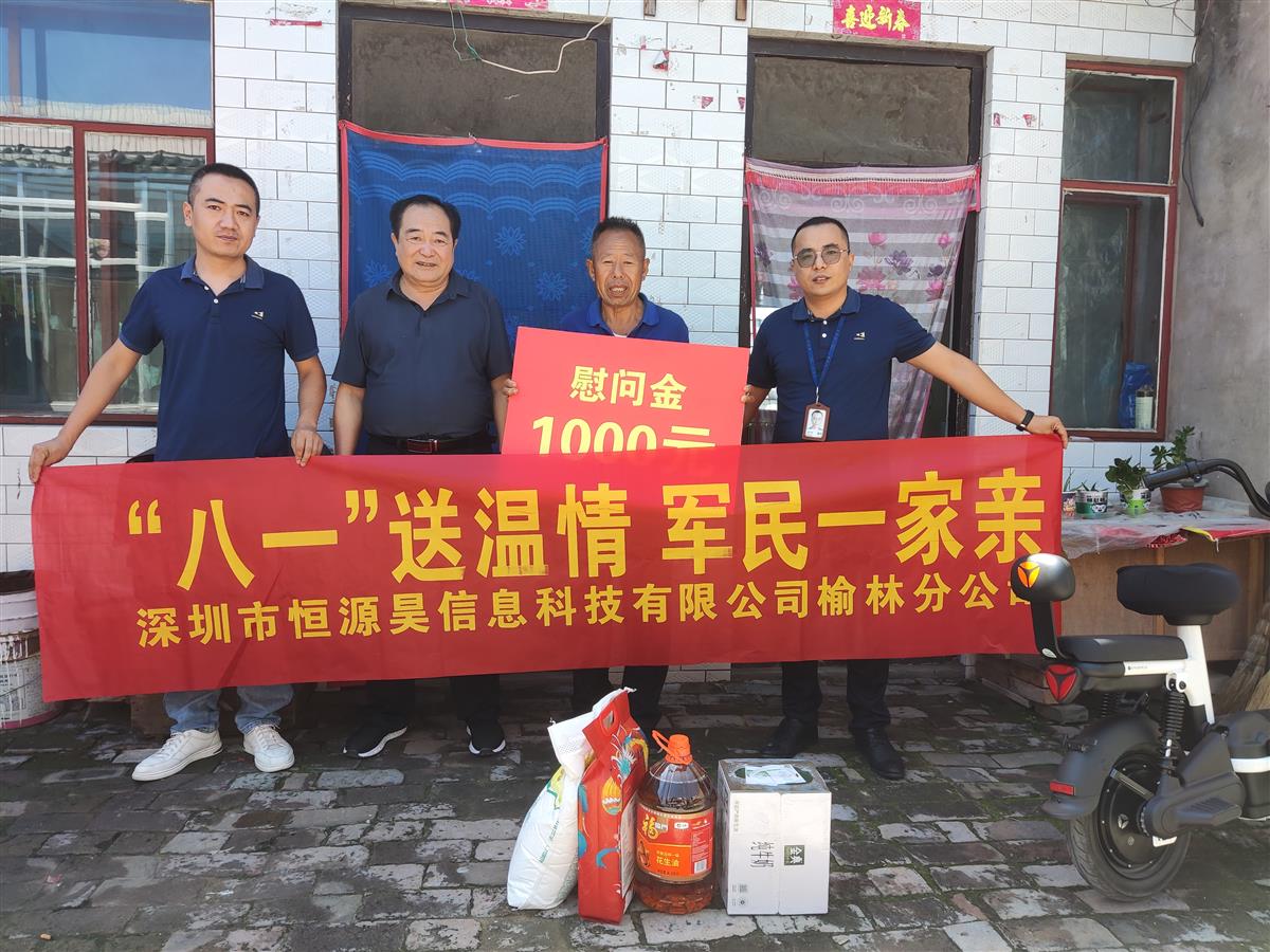 值此“八一”建軍節(jié)來(lái)臨之際,深圳市恒源昊信息科技有限公司組織新鄉(xiāng)、榆林、襄陽(yáng)三地分公司同時(shí)開(kāi)展擁軍優(yōu)屬活動(dòng),以實(shí)際行動(dòng)關(guān)愛(ài)駐地退役軍人,讓退役軍人度過(guò)一個(gè)屬于自己的歡樂(lè)節(jié)日。